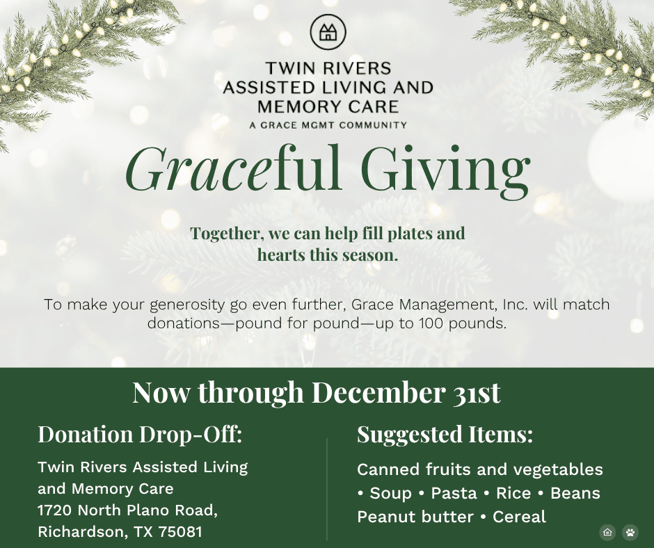 To make your generosity go even further, Grace Management, Inc. will match donations—pound for pound—up to 100 lbs! We can help fill plates and hearts this season through Graceful Giving.
